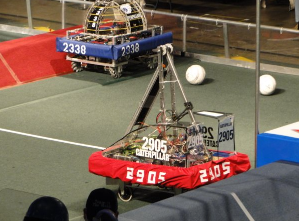 Bonus points are awarded for robots that cling onto either of the two towers in the center of the field